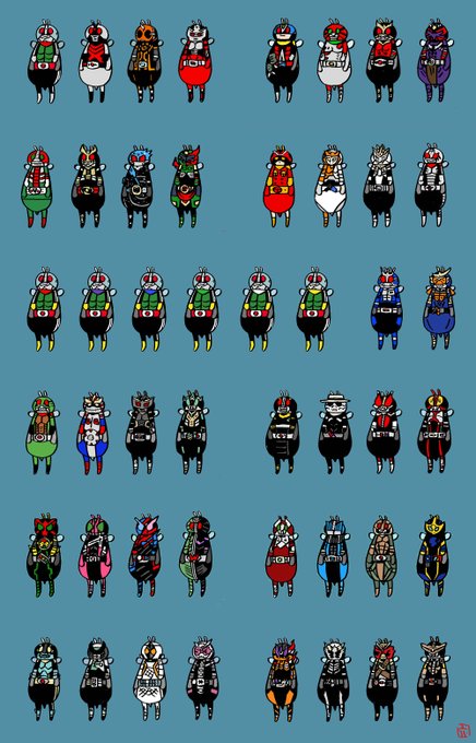 #4月になったので自己紹介しようぜ 大好きヒーロー(仮面ライダー、ウルトラマン、ガンダム、芸人さん)たちを蛙や蜜蜂や花やレッサーパンダに。 #かえるヒーローズ #お花ヒーローズ #みつばちヒーローズ #れっさーぱんだヒーローズ #ファンアート #イラスト