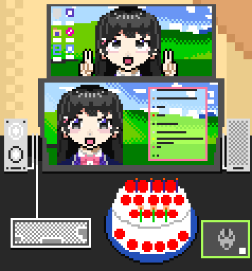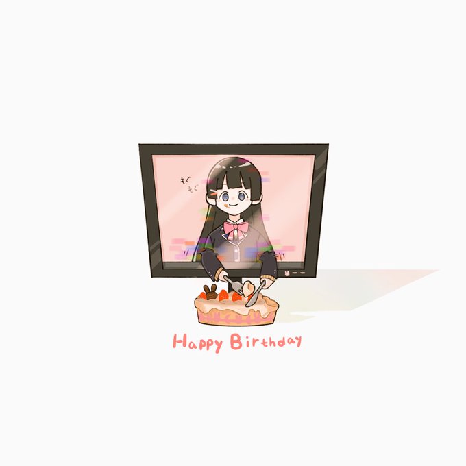 委員長お誕生日おめでとうございます! 委員長の雑談配信が大好きです! PCが無いので、PCから手を出して ケーキを食べる委員長を描いた! #みとあーと #みと生誕のPC前 #月ノ美兎生誕祭2021