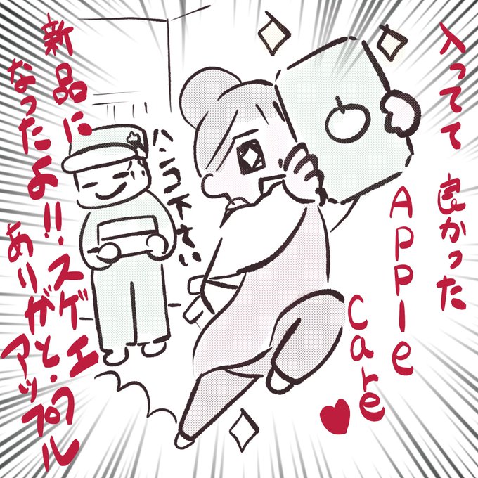 iPadにホワイトスポットとバッテリー劣化が出てきたのでAppleCareエクスプレスを使ってiPad を新品と交換してもらった Appleのお兄さんと電話してから24時間後に届いて びっくり すごいなApple! 超地方なのに。 保証期限、2月までだったからギリ💦 #AppleCare #イラスト #みどりの日常マンガ