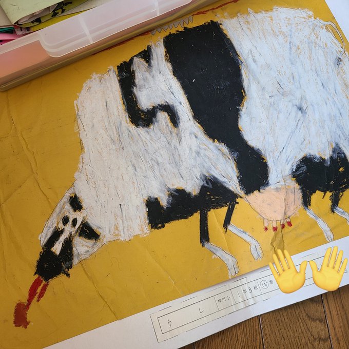 #みなさん30年前の今頃はどんな絵描いてましたか まだ絵描いてなかったかもなーと思いつつ、ちょうど実家にいたので探してみました。 そしたら小1(笑)の時の絵を見つけました! なんか味があって好き笑