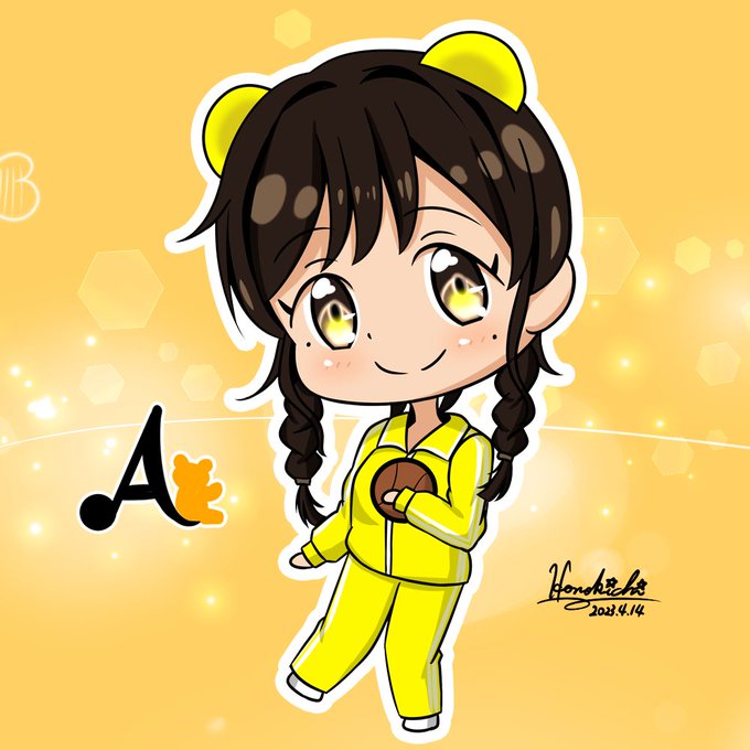 本日のちびくまちゃん🧸💛 今回は「くまっする」連載より、黄色ジャージの茜音ちゃん! 茜音ちゃんらしさが全面に出た黄色のジャージ姿がめちゃくちゃ可愛い😊 #イラスト活 #みにみにくまちゃん #熊田茜音