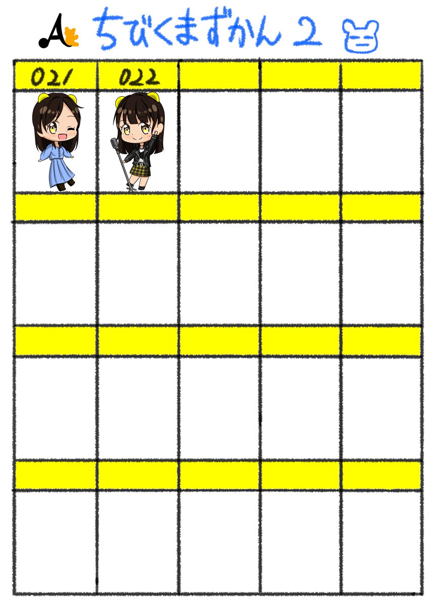 "ちびくまずかん"も着々と埋まってきました🧸 こうしてみると、色んな茜音ちゃんのお衣装を描いてきたんだなっていうのと、華々しい図鑑に仕上がりそうで期待が膨らみます😊 茜音ちゃんのお気に入りの子はいるかな??😊🧸 #イラスト活 #みにみにくまちゃん #熊田茜音