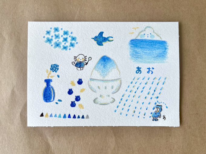 「色あそび(あお)」 #しあわせのおすそわけ展2 の会期中に制作、展示した作品。 #青 #みやしたりののイラスト #イラスト #しばいぬ #ウーパールーパー #鹿児島 #シェアカゴ #絵描きさんと繋がりたい #色鉛筆画 #レトロ #kagoshima_art #テンホヤちゃん #HolbeinArt #アナログイラスト