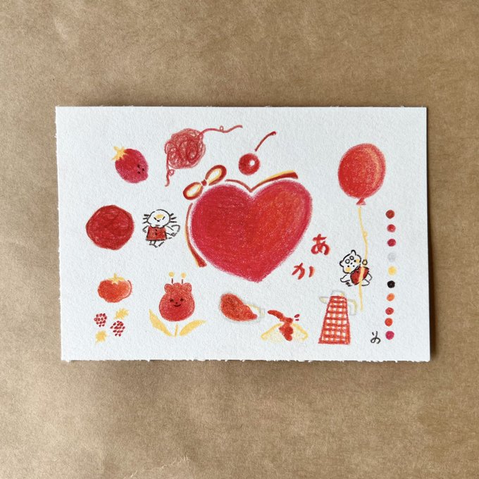 「色あそび(あか)」 #しあわせのおすそわけ展2 の会期中に制作、展示した作品。 #赤 #みやしたりののイラスト #イラスト #しばいぬ #ウーパールーパー #レトロ #鹿児島 #シェアカゴ #絵描きさんと繋がりたい #ホルベイン #kagoshima_art #テンホヤちゃん #色鉛筆画 #HolbeinArt #アナログイラスト