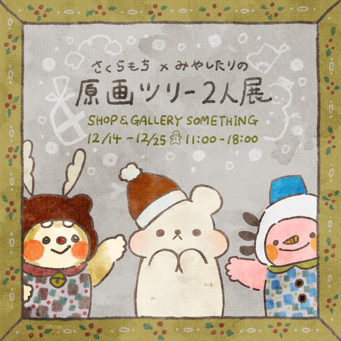 #原画ツリーミニ2人展 いよいよ明日からです! 本日さくらもちさん @skrmt56565 と楽しくツリーに原画を飾ってきました🎄 画像2~4枚はお気に入りの作品達です😚 自身の今年最後の展示になります。 皆様宜しくお願い致します🙇♀️ #みやしたりの #さくらもち #みやしたりののイラスト #ミニ原画
