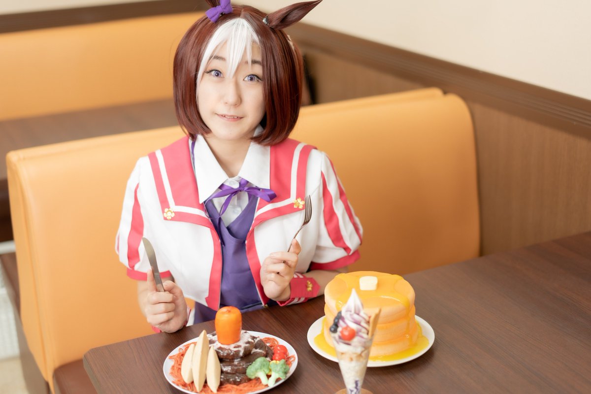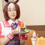 【コスプレ】 ウマ娘 / スペシャルウィーク いっぱい食べるスペちゃん好き! photo @Mistral_Gray #コスプレ #ウマ娘になってしまいました #cosplay #ハコスタジアム東京 #みょこが写ってるやつ