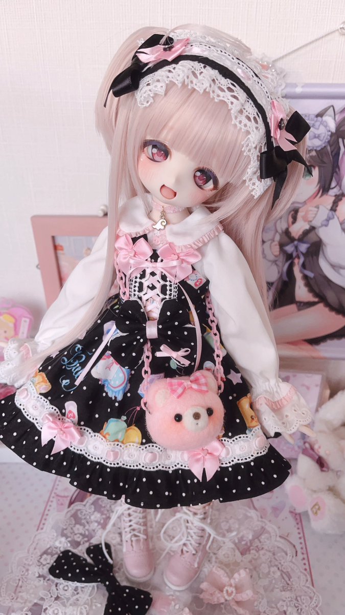そしてインソムニア様の萌え袖オフショルワンピース着せたらめちゃくちゃあざと可愛いセクシーギャルになった 項がやばい!! 谷間はないけど項で魅せる・*・:≡( ε:) #みるっ子 #みるきゃんウィッグ #MDDはいいぞ #insomnia_doll #でらしねアイ