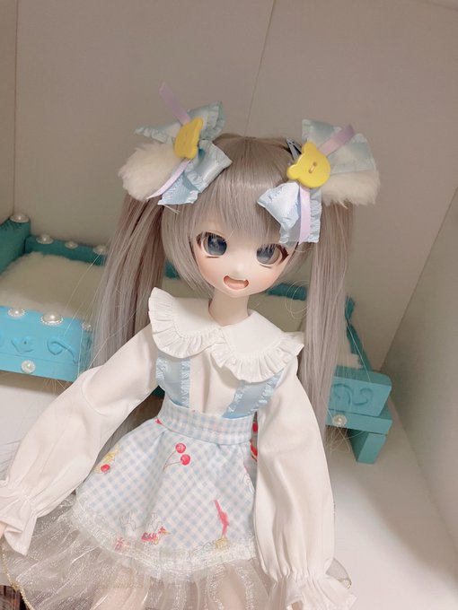 初めて作った手作りのアウターを着せて撮ったお写真📸😭 水色が似合う瞳留ちゃん😇 明日はこのお洋服で行こうかな? #ハンドメイド作品 #MDDはいいぞ #うちの子かわいい #ドール用アクセサリー #ドールオーナーさんと繋がりたい #みるしぇっ子
