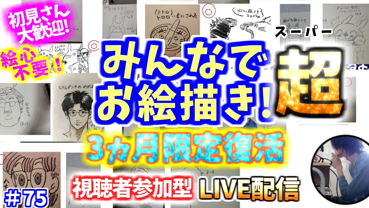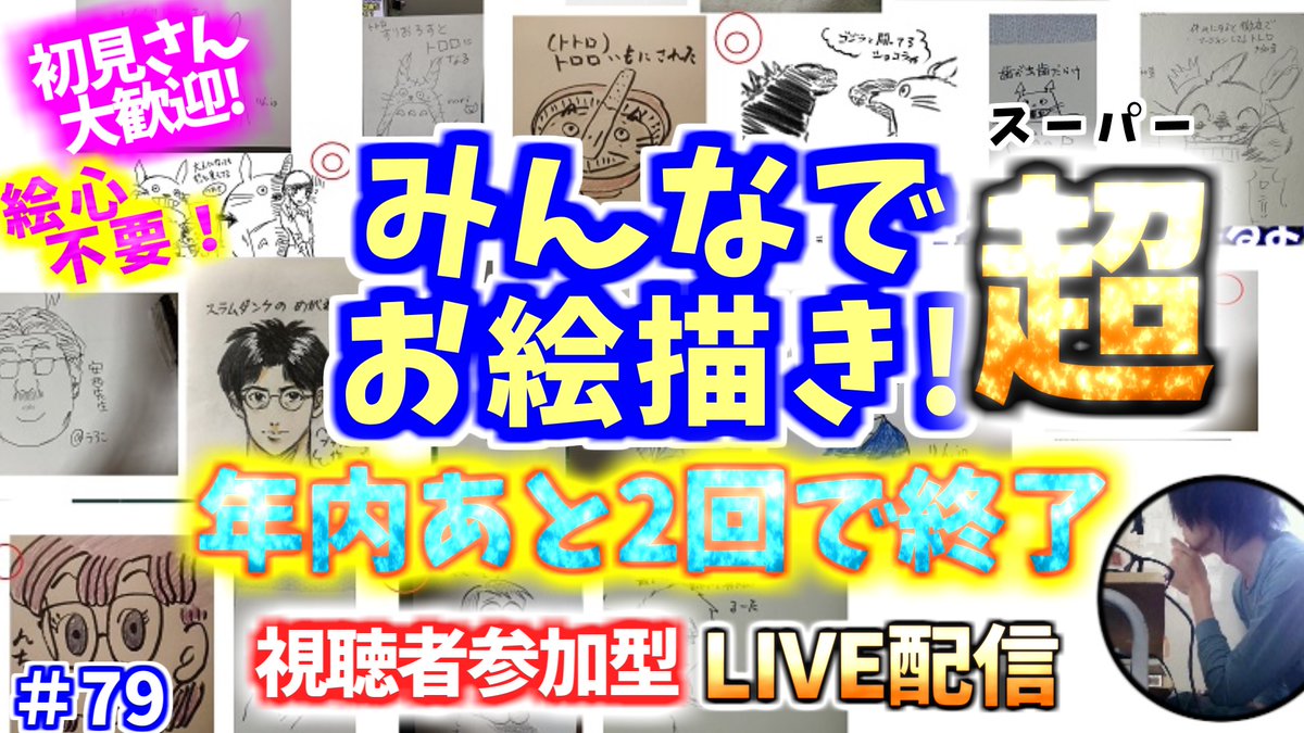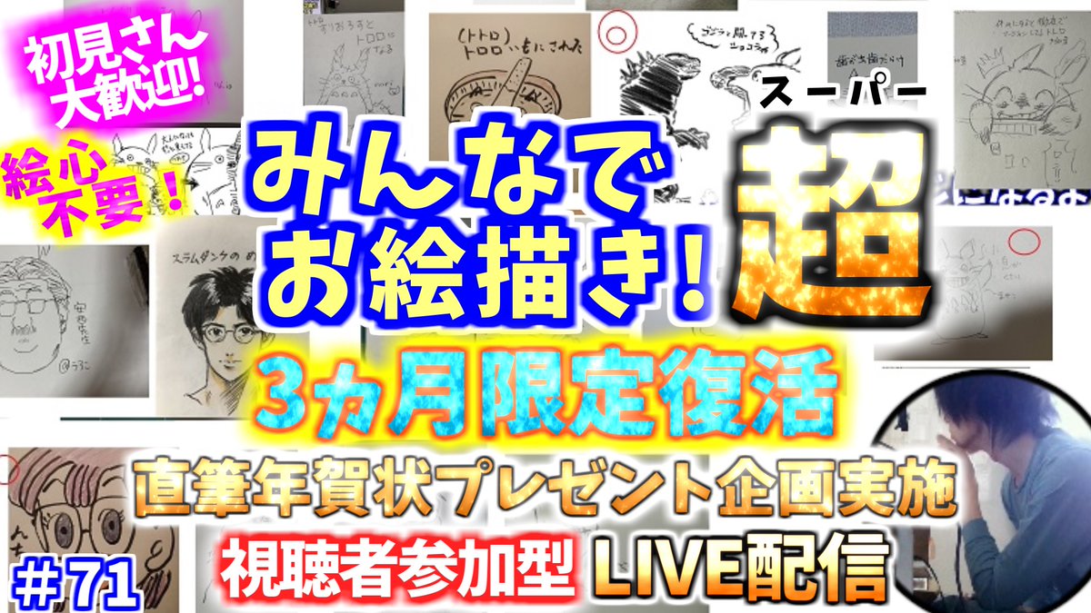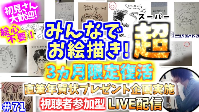 ✨視聴者参加型お絵描き配信✨ 今夜YouTubeLIVEで20時半からやります! 誰でも参加できます👍 ここから↓ youtu.be/7w7meJNF3jc #イラスト #みんなでお絵描き 主の直筆年賀状希望者現ポイント ※賀状希望の方はエントリー制になります