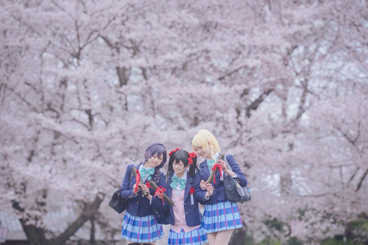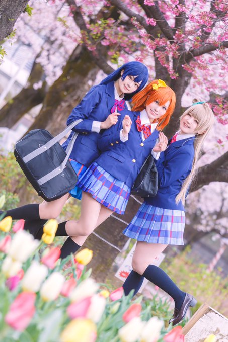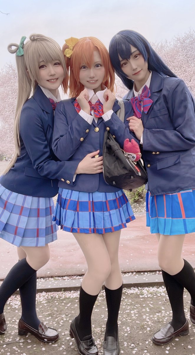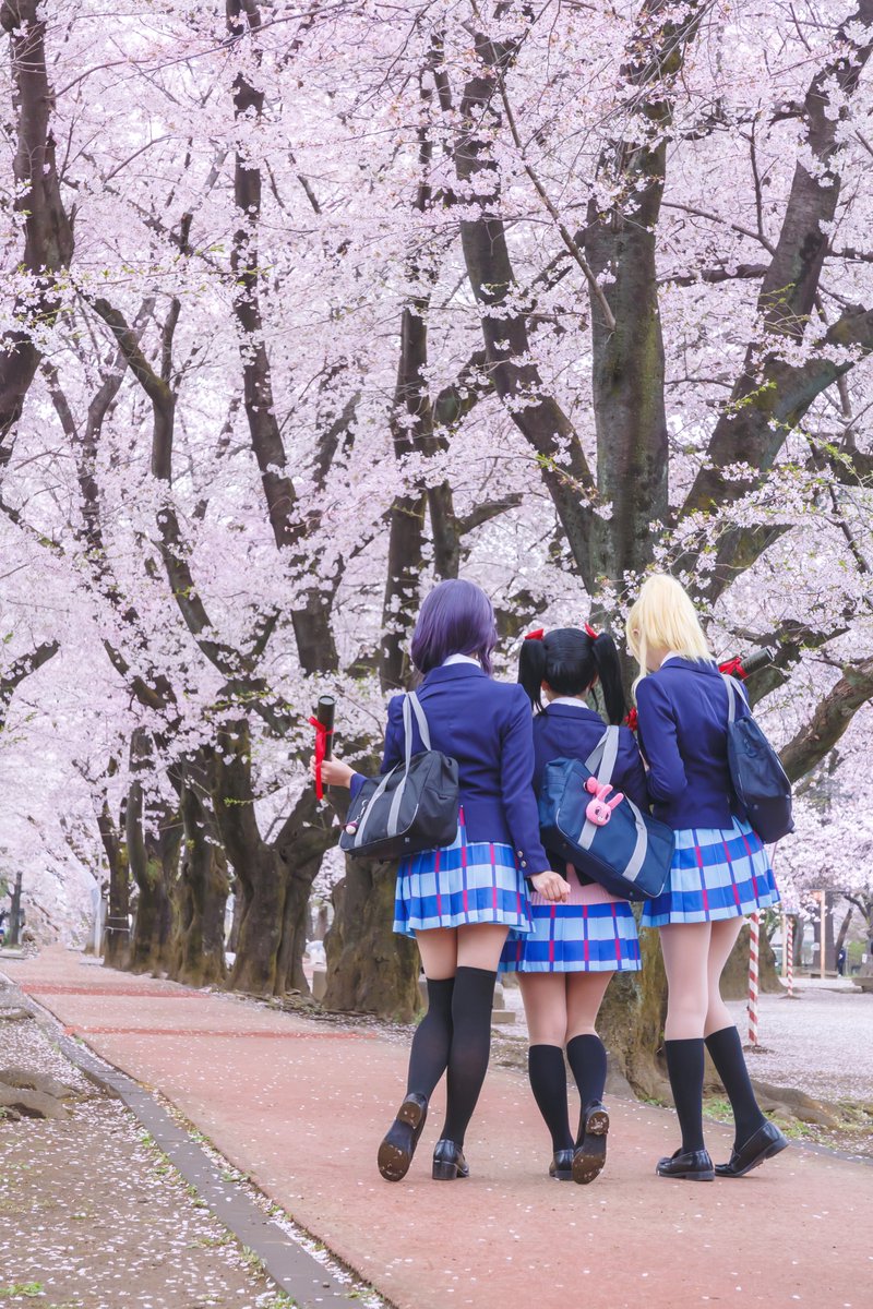 【コスプレ】 ラブライブ! 矢澤にこ🌸東條希🌸絢瀬絵里 私たちはやっぱり スクールアイドルであることに こだわりたい――― photo:@simunacanon #みんなで叶えた夢の音ノ木坂制服桜併せ