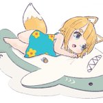 サメくん!あなた サメくんっていうのね! (でっかいぬいぐるみの上で トトロごっこするきつねちゃんです) #イラスト #絵描きさんと繋がりたい #セミくん #みんなで楽しむTwitter展 (51日目)