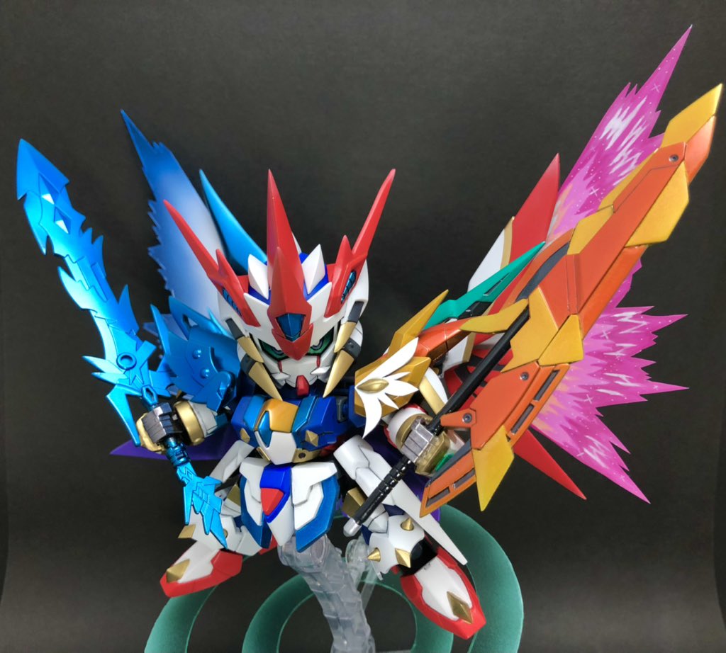 #GBCJ2021 #みんなでSDガンダム #一般の部 作品名: 醒竜騎士デスティニーガンダム 邪竜騎士デスティニーが正義の心に目覚めたら…デスティニーをモチーフに魔竜剣士ゼロガンダムを改造しました。 雷龍剣と嵐虎剣、2つの力と翼を持つアシンメトリーな最終形態です!