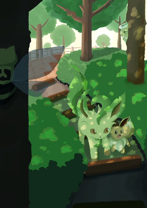 #みんなのイラストで12色相環 ふよさんの素敵企画、6番担当させていただきました!素敵企画ありがとうございました🙌✨ 森の奥へ (リーフィア&イーブイ) twitter.com/fuyo_2410/stat…