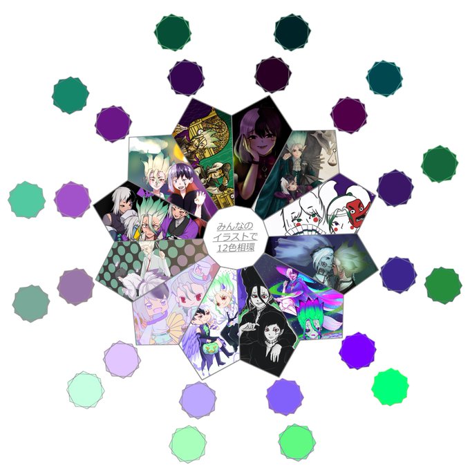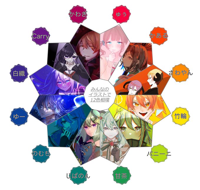 ENで12色相環🌈🕒 フォロワー100人企画でやりました!とてもステキなカラーサークルが完成しました!✨参加してくださった皆様、本当にありがとうございました!! #みんなのイラストで12色相環