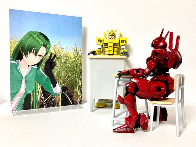 トマト栽培以外にも、新規就農MSとして稲作の知識も得ようと、ベテラン稲作農家の稲葉能美ちゃん@Nomi_Inaba のオンライン授業を受ける、トマト生産者ミオミオ支援専用MS 🍅トマト #エアリアル の様子です。 #農ガンダム #ガンプラ #みんなのエアリアル #ガンプラは自由だ #新鮮農家 twitter.com/marutakashop/s…
