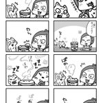まいど〜♪しそみです〜♪(OωO)ノシ 今日もネコちゃんと仲良しハッピーです♪ お昼ごはんの後は眠たくなりますね、、 そうもゆうてられへんけど♪HAHA♪ 以上、しそみでした〜♪ #みんなのニャンニャンニャンフェスティバル #イラスト #漫画