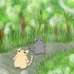 今度は森林にやってきたちーちゃんとみーくん🐾🐈🐈⬛🌿 森林浴で心身共に健康になったはず✨ 本当は植物園を描こうと思っていたのですが、気づいたら森林になっていました🤣 #イラスト #illustration #絵描きさんと繋がりたい #みんなのニャンニャンニャンフェスティバル
