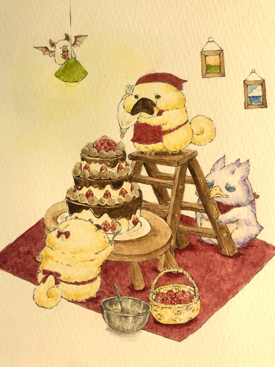 ハッピーバレンタイン✨ 美味しいケーキをみんなで作ってるよ🍰 つまみ食いは格別の味🎶 #ValentinesDay2023 #みんなのバレンタイン作品がみたい #バレンタイン #透明水彩 #イラスト #illustration