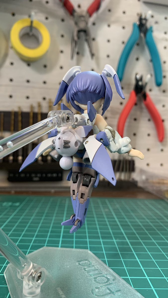 ナビカちゃんのスカートのバーニアを増設と塗装しました 次は専用武器を考えないとだ #デスクトップアーミー #アクアシューターズ #ガシャポンクエスト #フレアナビット #みんなのフレアナビットが見たい