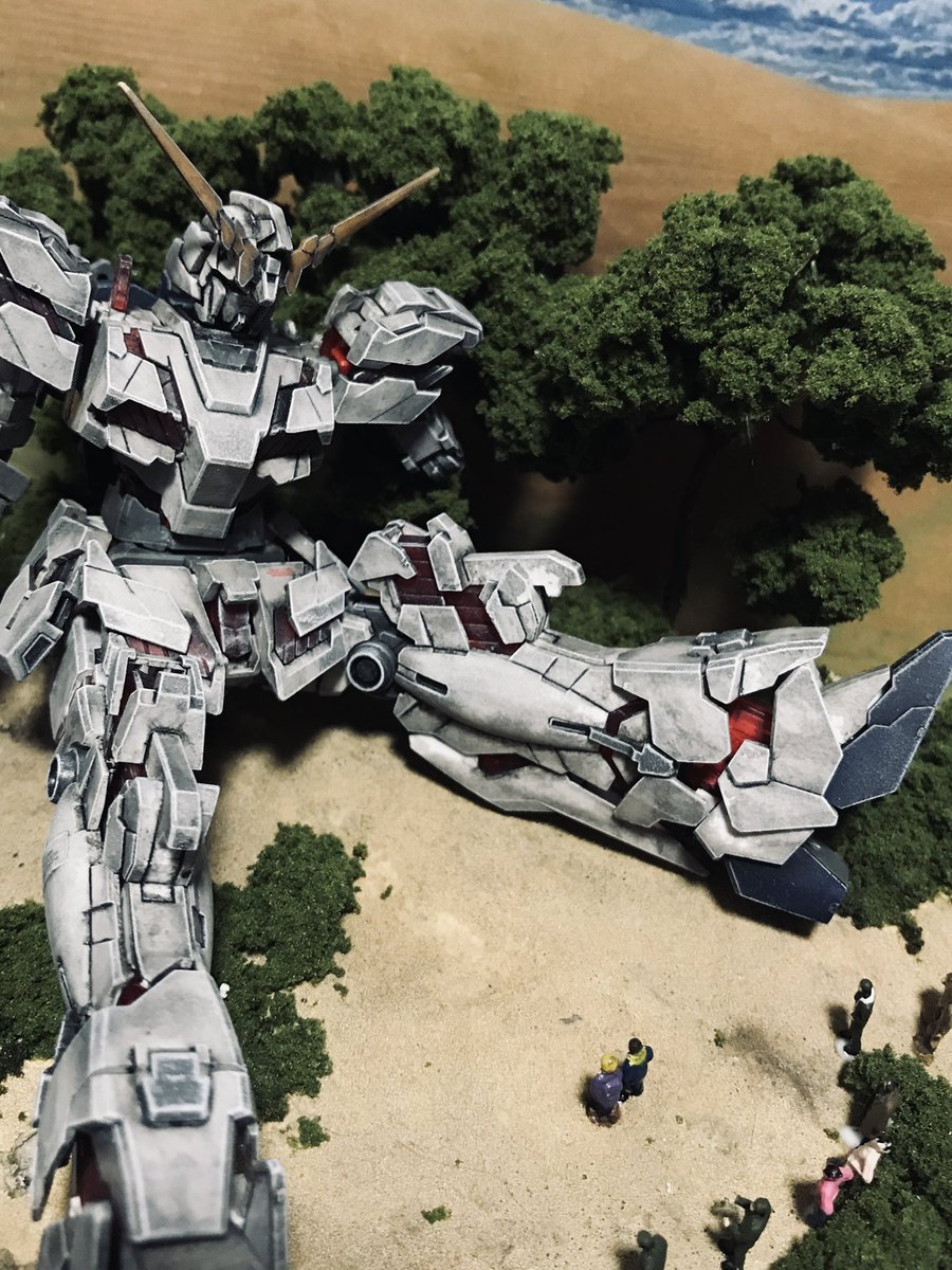 #みんなのユニコーンを見たい お台場立像 RGユニコーンです わりと気合い入れて作れた方だと思います! #ガンダム #ガンプラ #ガンプラ好きと繋がりたい #ガンプラの画像貼るとRTされると聞いて #RG #ユニコーンガンダム #お台場 #ユニコーンガンダム立像 #プラモデル