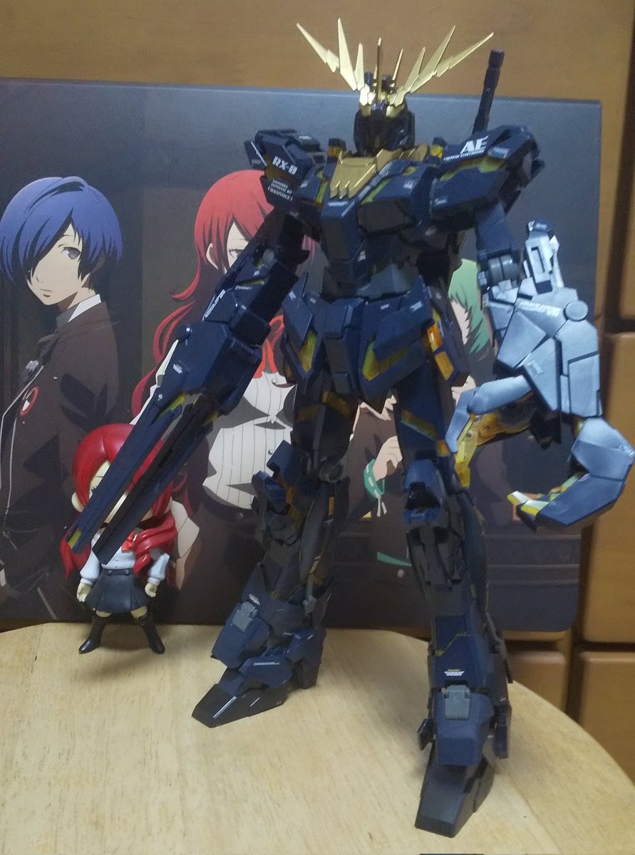 #みんなのユニコーンを見たい RG ユニコーンガンダム バンデシネVer が地震で破損しちゃったんですが バンシィ 最終決戦Verみたいでこれはこれでって事でこのまま飾ってますw! #ガンプラ