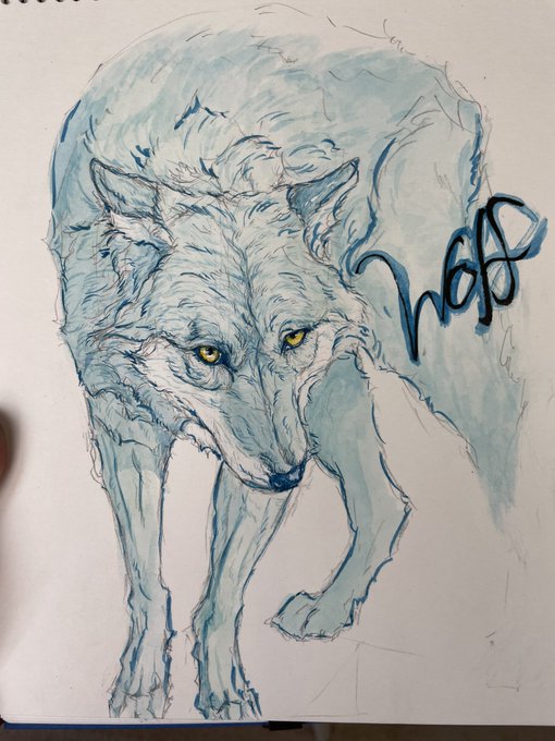 オオカミ書きました🐺 いい感じ? 右と左どっちが好きですか… もっと頑張ろう〜絵を描くのは楽しい! #絵描きさんと繋がりたい #みんなで楽しむTwitter展覧会 #オオカミ #みんなの動物園
