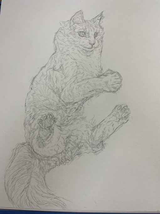 ちょっと遅めの投稿ですが… 久しぶりににゃんちゃん描きました🐈 しっかり書き上げることが大事ですねw 絵の具の筆も買ったし頑張ろう✨ #デッサン #ニャンゴロー #猫 #絵描きさんと繋がりたい #みんなの動物園 #みんなで楽しむTwitter展覧会