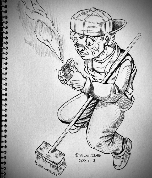 相互のO金さんに29日の記念に掃除のおじいを描けと言われました〜。 おじいは難しいので、デフォルメVerで描きました。ついでにタグも作ったので、どなたか使って下さい。 Cleaning man and Black Sabbath. #みんなの掃除のおじい見せて #jjba #jjbafanart twitter.com/barairo_0424/s…