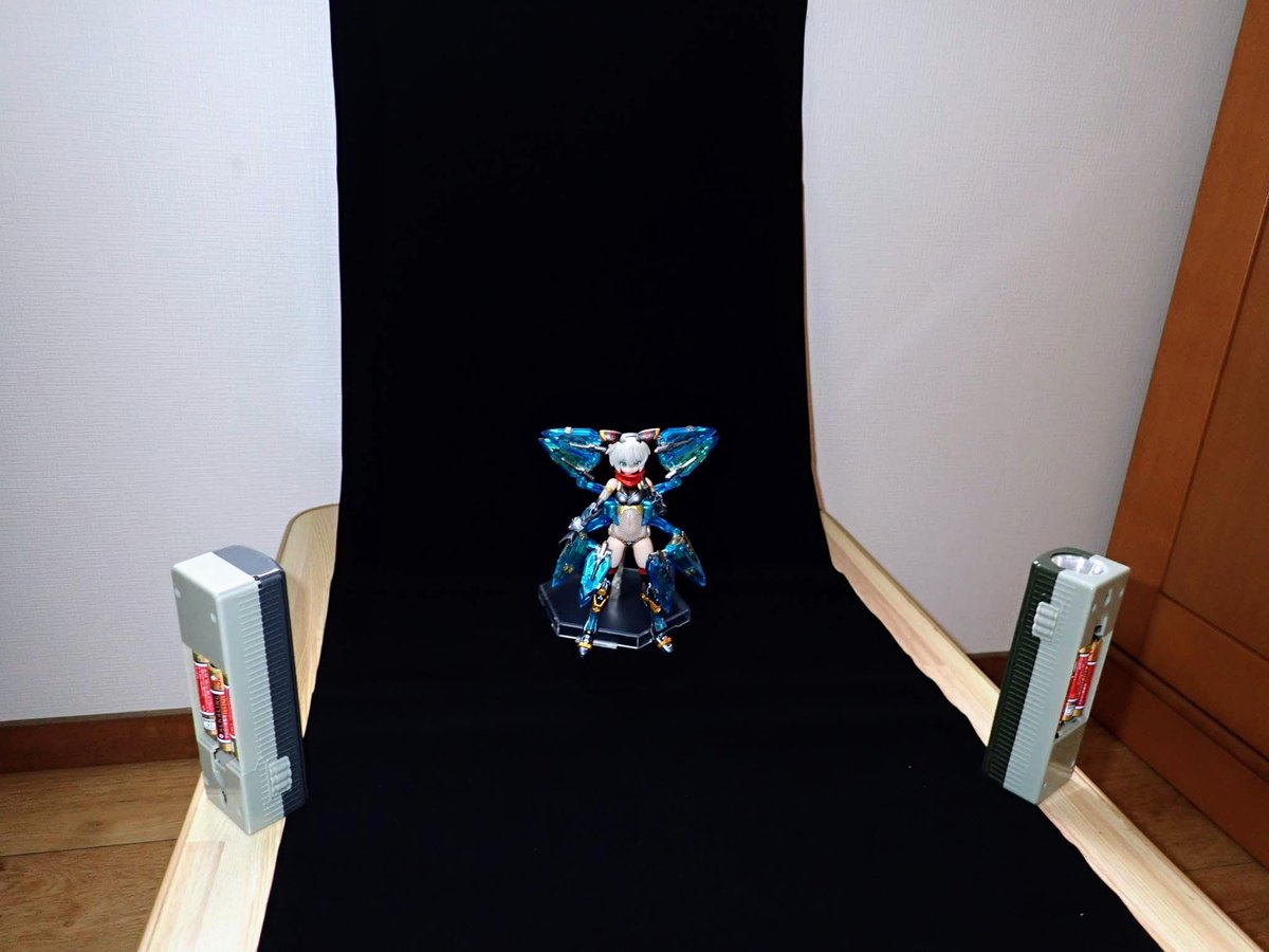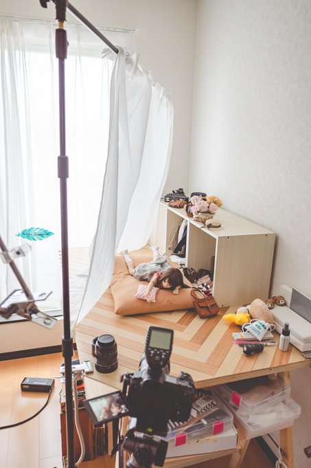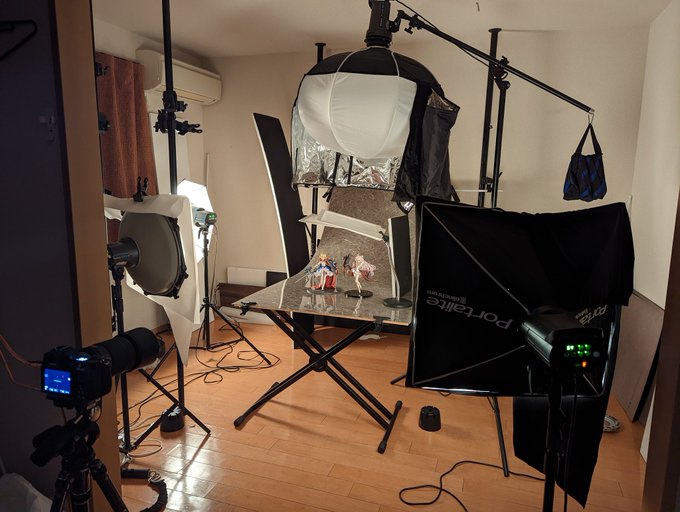 #みんなの撮影環境 自宅の340×780の机の上です。 この上に背景ボードやら、箱庭技研さんのジオラマルームやら、ストラクチャーやら、野比のび太の部屋という名のぶりぶりざえもんの部屋やら置いて撮っています。 #オモ写 #Kin_Photo