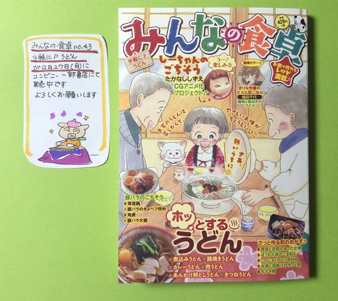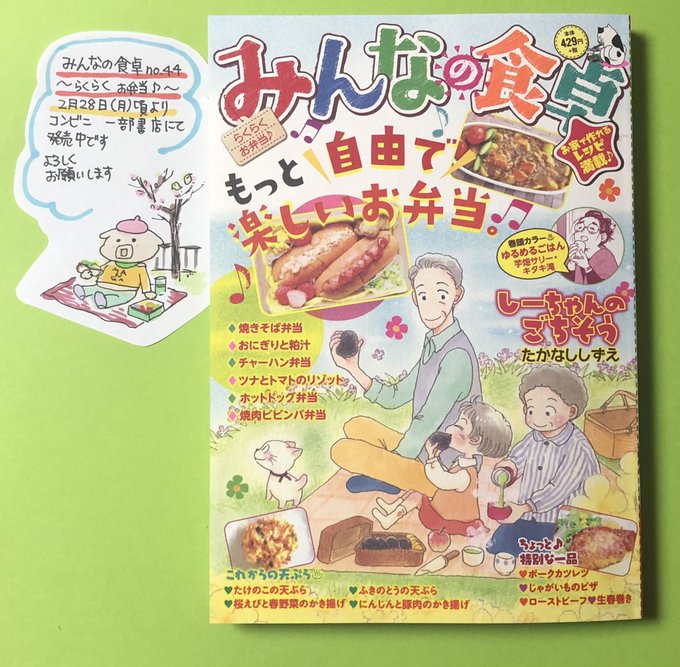少年画報社刊 「みんなの食卓」No.18 表4カラーイラスト(2017年) 主線:Dr.マーチンピグメント(アクリル系顔料)のカラーインク・ラシット 着彩:ホルベインの水彩絵の具 水彩絵の具を使っても滲まず重くない主線にしたくて、この頃色々探していました #illustration #みんなの食卓 #思い出食堂