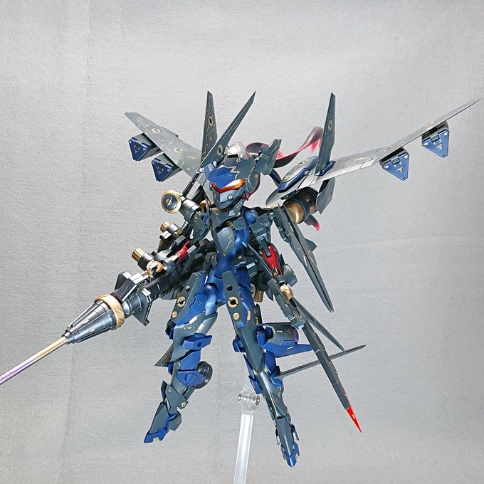 どこぞかのクラフトショップで買ってた金属パーツとWISMグラップラーの襟足パーツをちょっと加工してつけただけのお手軽改造ですけど何気にかわいくなったきがしますよ( ´ ▽ ` )ウフフフ twitter.com/huga_e/status/… #メガミデバイス #みんなのSOLを載せる