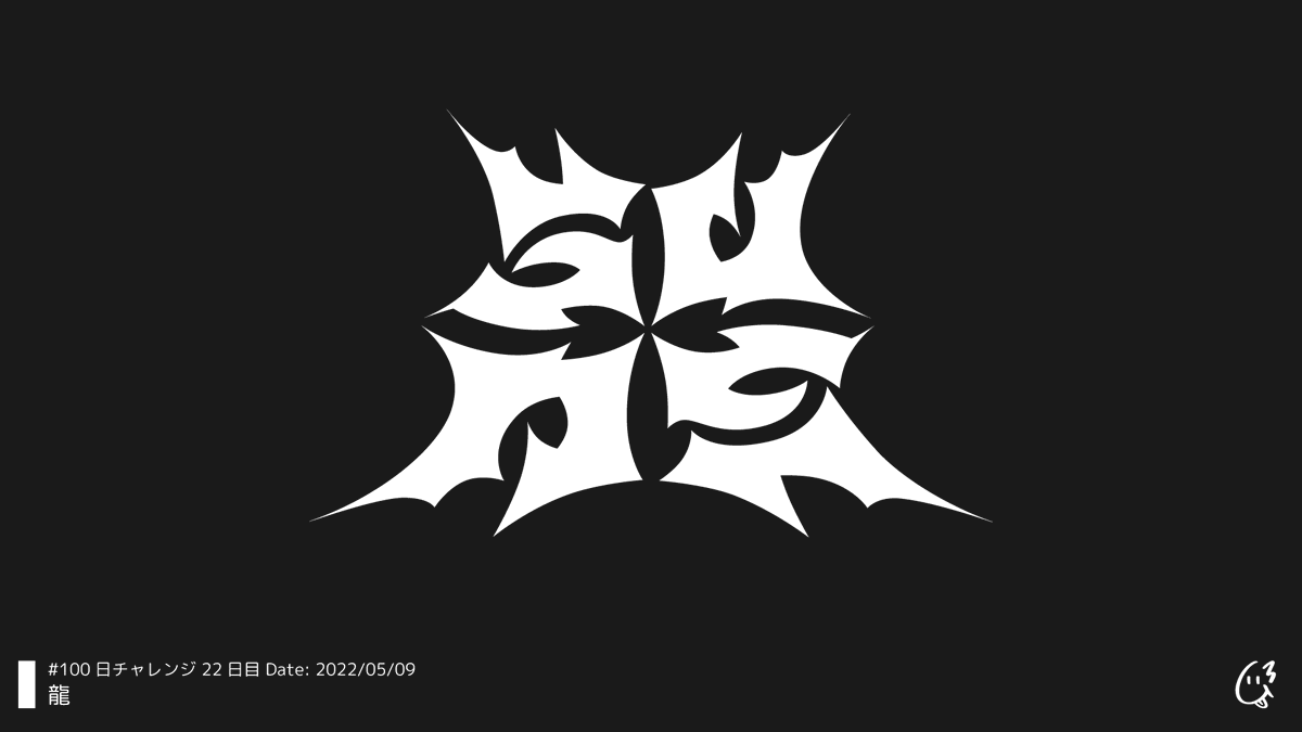 「龍」022/100 180度回転しても読める(かもしれない)やつです。 デスロゴみたいのやってみたかったけど、アンビグラムも絡むとちょっと難しいですね…! また機会あったら挑戦してみたい! #100日チャレンジ #みんビグラム