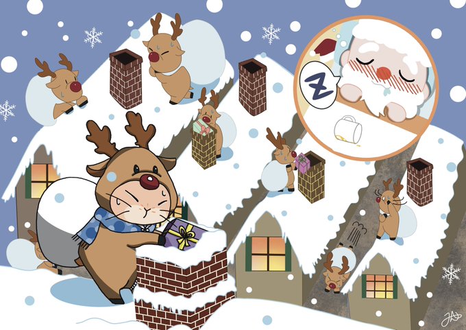 🐰<【2023ver.🐰カレンダー】😋💕 12月🎁前夜楽しみすぎたサンタさんがまさかの寝坊⁉️大急ぎでプレゼントを配る事になったトナカイたちと🐰さんです😂 #イラスト #みんlabo #カレンダー制作 #私の絵柄が好みって人にフォローされたい #うさぎ #イラスト好きと繋がりたい