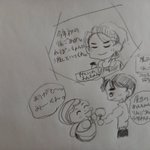 「れぼこのカバンの中に…」 れぼこのカバンの中に、ぎょーちゃんの紙袋が入っていたので、おさるさんと不思議がるみーくん。 ぎょーちゃんは、おさるさんよりたくさんチョコを貰うらしい。 #おさるさん #激務労働 #みーくん #ぎょーちゃん #れぼこ #絵描きさんと繋がりたい #絵師さんと繋がりたい