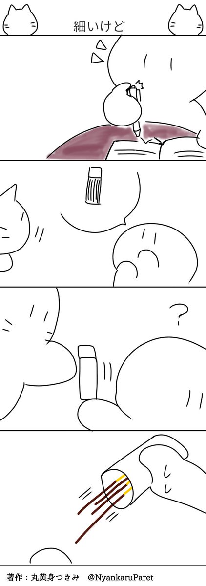 第27話 むげんねこ シャーペンの芯を持ってきて欲しかったふぃん。 にーてぃが持ってきてくれたのは・・? #4コマ漫画 #4framecartoon #漫画が読めるハッシュタグ #ねこ漫画 #シャーペンの芯 #むげんねこ