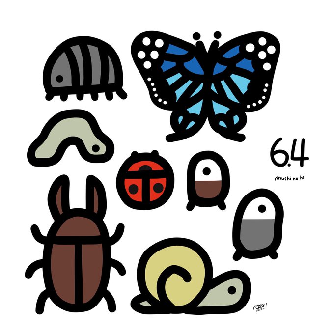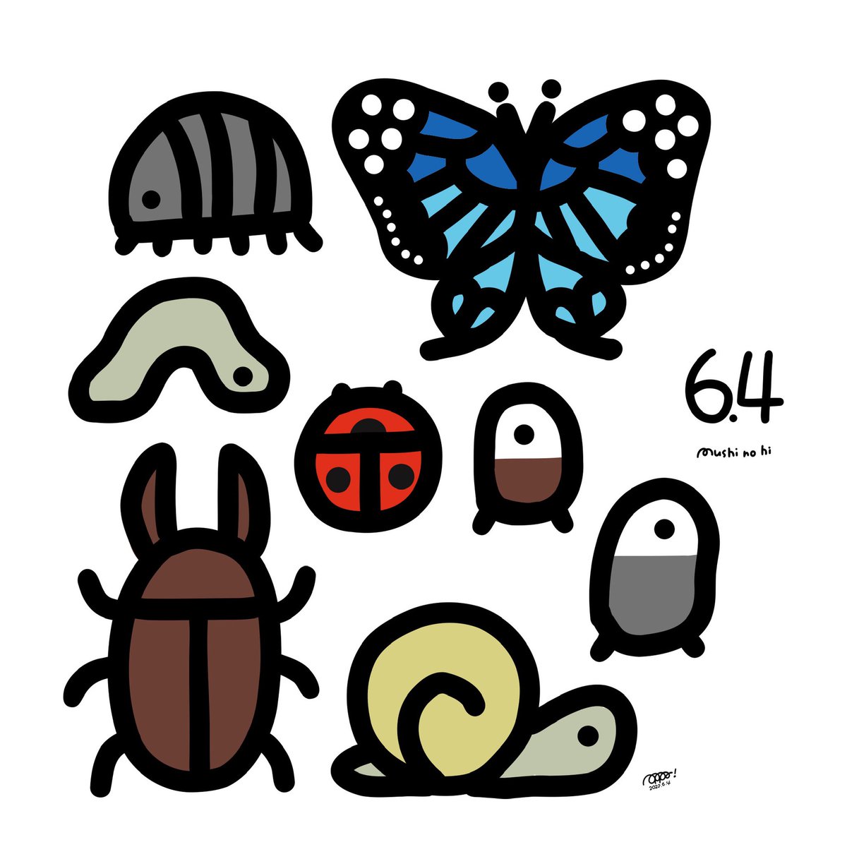 #むしの日 🐞 「む(6)し(4)」の語呂合わせから制定されました。 虫はどうも苦手で反射的に驚いてしまいます…平気になりたい😖💦 #今日は何の日 #今日は虫の日2022 #虫の日 #オリジナルイラスト
