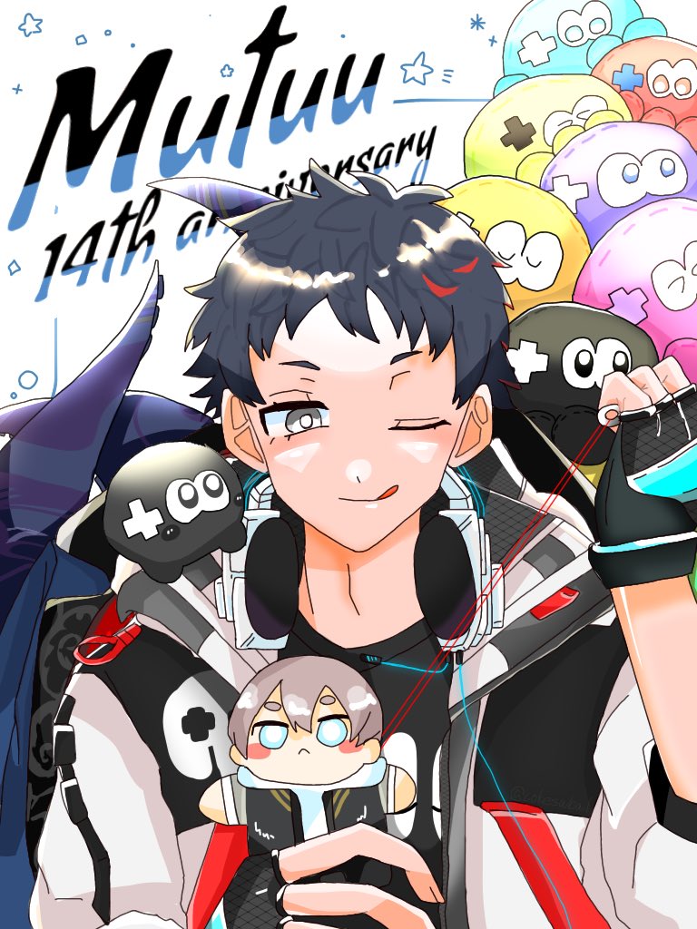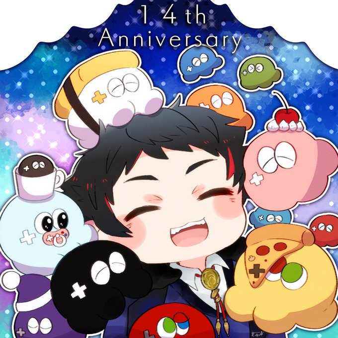 #むつー14周年FA #俺たちのむつーか絵せよ 14周年おめでとうございます🥳 楽しいのおすそ分けのおかげで命が成り立ってます。これからもむつーさんの全力投球を自分なりの形で応援させて下さい 本当におめでとうございます👊🏻✨✨!