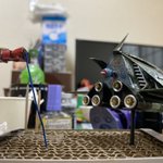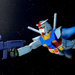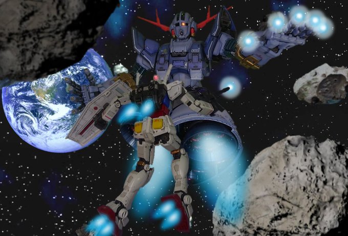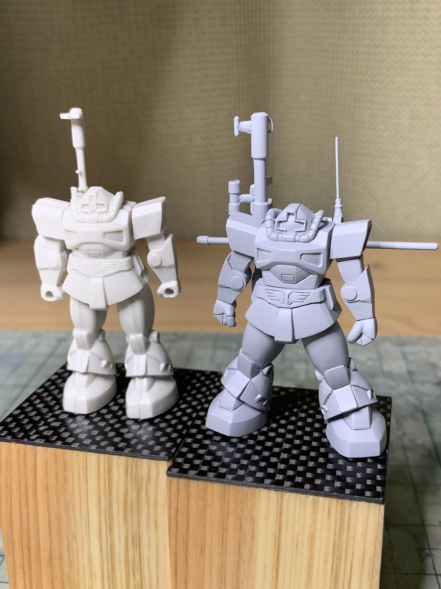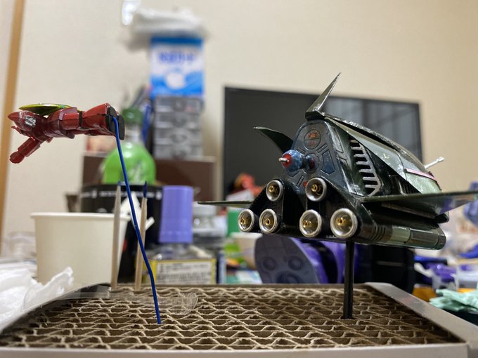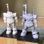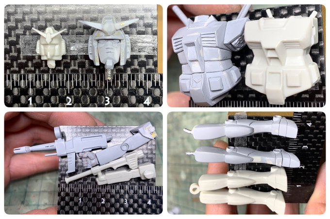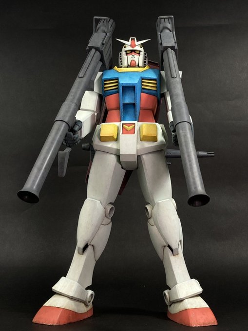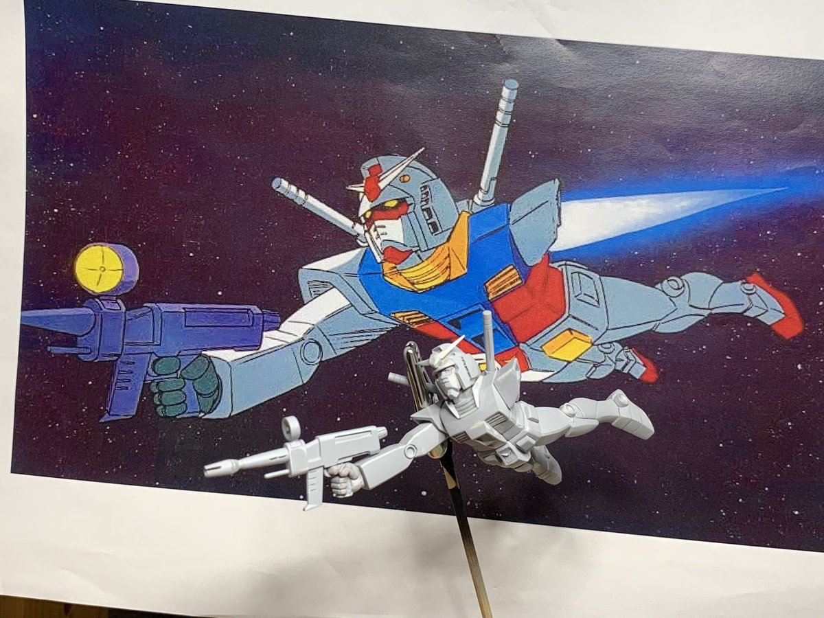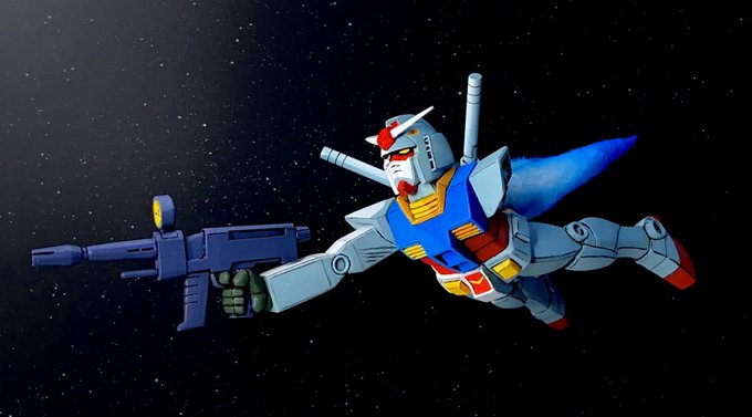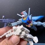 #森永ガンダムチョコスナック #めぐりあい宇宙 ガンダムチョコスナックのおまけガンダム めぐりあい宇宙のジオング追撃シーン完成しました 3枚目はベースキットとの比較 元画像がかなりパースが付いているのとライフルはそもそも付属しない為、頭とライフルはスクラッチ 粉模展間に合った!