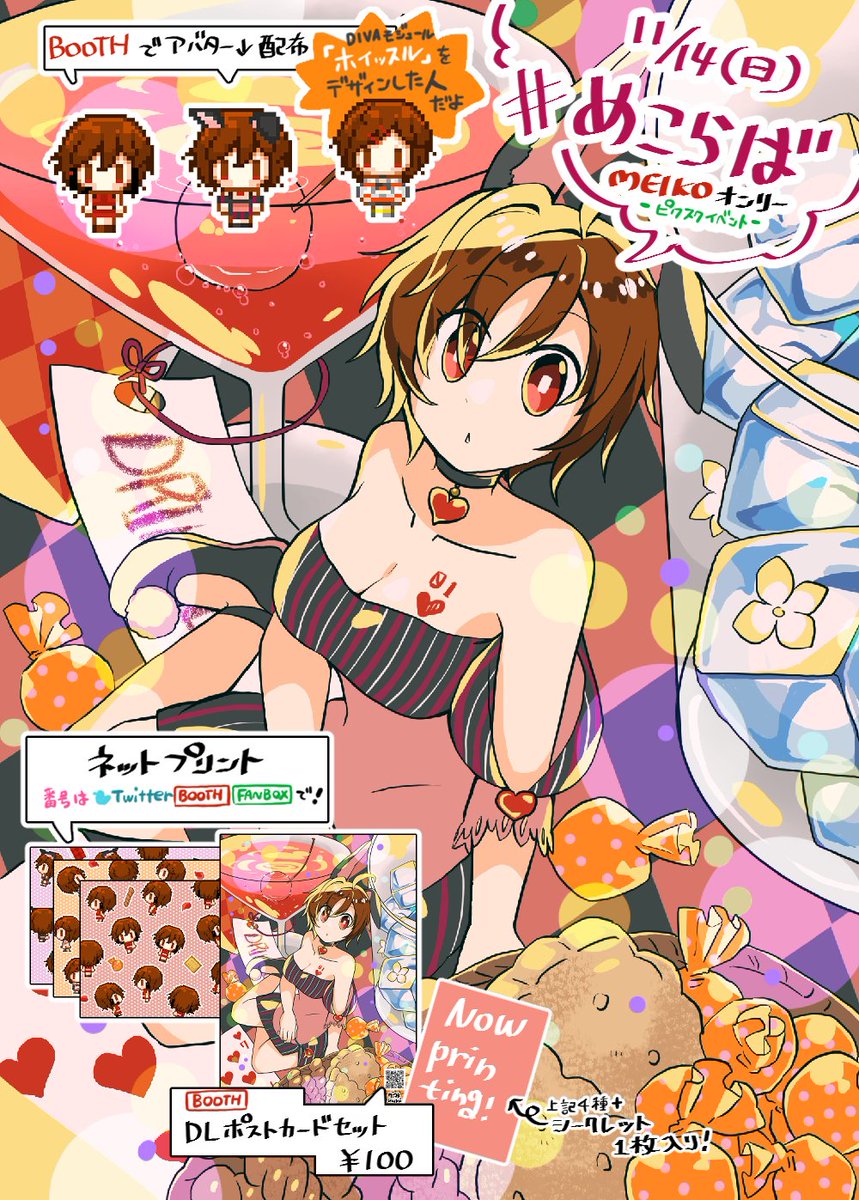 【🍷#めこらば イベント情報】 11/14(日)10:00~ピクスク内開催のMEIKOオンリー通称「めこらば」参加します! ▼会場 pictsquare.net/hcp6xxy51mc5n6… ▼頒布物 724.booth.pm 🍷¥0アバター 🍷ネットプリント 🍷DLポスカセット 🍷FANBOXで「ホイッスル」過去絵再掲 よろしくお願いします!🙌