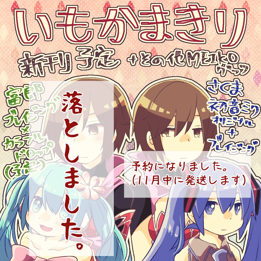 #めこらば のサークルカットとお品書きです。 富郎先生の新刊は諦めたそうです。 さくまの新刊は11月中に完成させて発送します!! 【for MEIKO Love Art】 2021.11.14(日)10:00~22:00 めこらば会場→pictsquare.net/hcp6xxy51mc5n6… いもかまbooth→imokamakiri.booth.pm よろしくお願いします!!