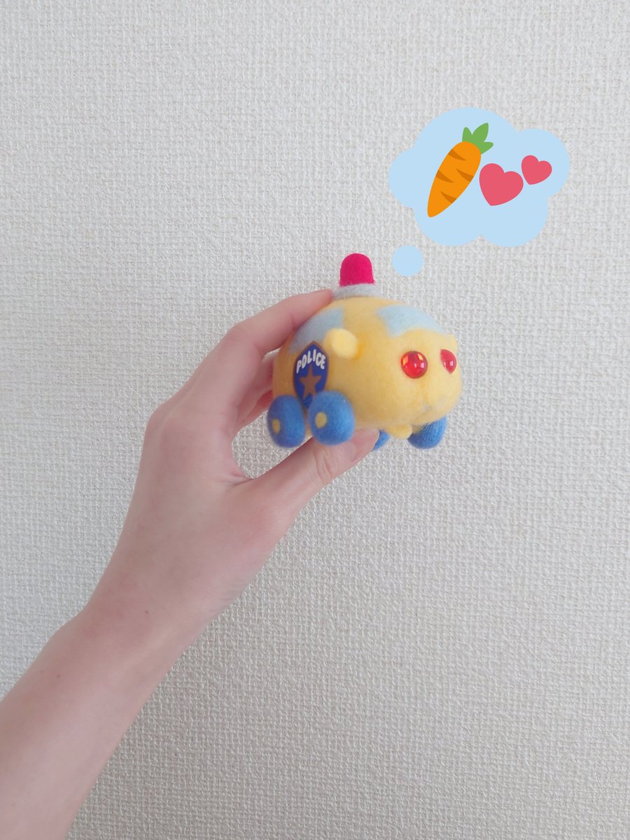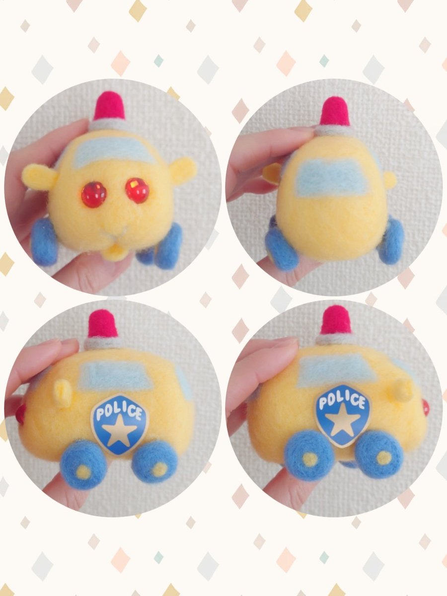 みーたんと羊毛会して、土台だけ仕上がってたパトモルちゃん完成っ🚓✨!!働くモルカかわいいーー( *´꒳`*)♡ パトランプが上手くできたっ! キッドはコンプリート🤩✨ #モルカーファンアート #モルカー作ってみた #めりけんのわたわた