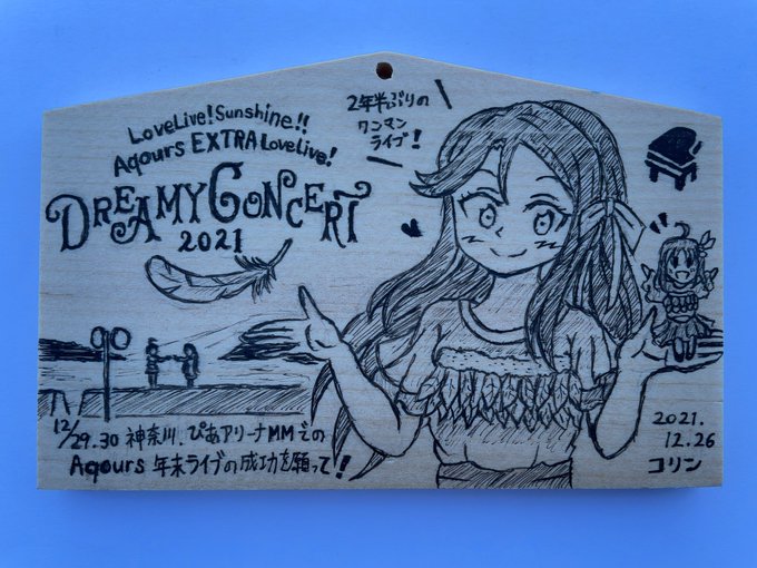 今日、内浦の淡島神社に絵馬奉納しました。12/29.30、ぴあアリーナMMにて約2年半ぶりのAqoursライブが開催されるので、桜内梨子ちゃんを描きました。 1期10話の「大好きだよ」シーンを添えて。ライブ成功を祈願して(・∀・) #lovelive #Aqours #もうすぐAqours年末ライブ