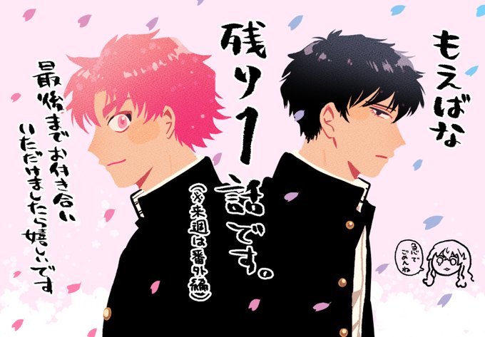 🌻もえばな最新27.5話更新🌻 今週は番外編になります!卒業式のお話です。 本編最終28話は3月30日(木)更新です! 残りわずかですが最後まで楽しんでいただけたら嬉しいです! #もえばな [番外編10]もえばな - 横山左 | 少年ジャンプ+ shonenjumpplus.com/episode/485600…