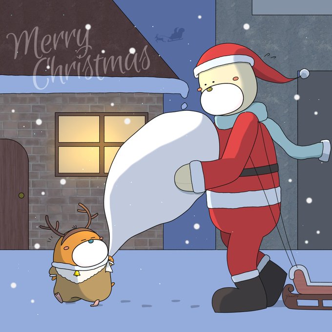 今夜はふたりでプレゼントを配ってます🎁🌙 (1日過ぎちゃってることは内緒で🤫) #もぐぅとアイムくま #クリスマス #LINEスタンプ #イラスト #イラスト好きな人と繋がりたい #絵描きさんと繋がりたい