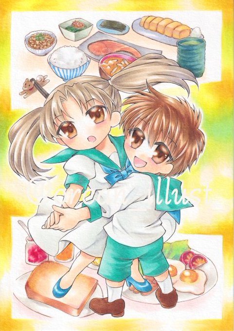 明日から開催される #もぐもぐモーニング展 参加しております! 「朝ごはん」がテーマだったので、オリキャラのジャム娘ちゃん達を描きました🎨 デジタルかアナログか迷いましたが、せっかく見てもらうなら…と思い、珍しく水彩使って仕上げました✨ どうぞお好きなジャム娘ちゃんを見つけて下さい♪ twitter.com/cafeatelier_pm…