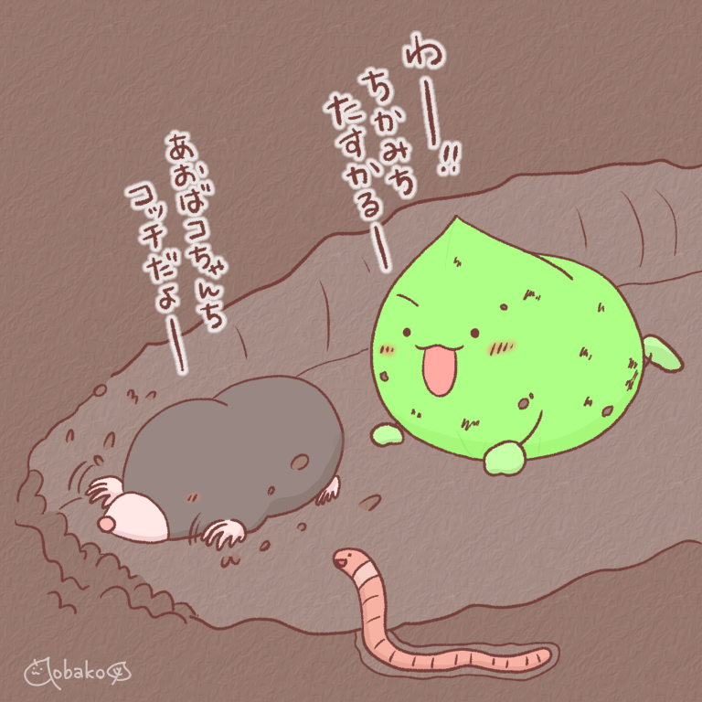 おはばコ~☀️ もぐらさんの穴にご招待されてね!!色々見せてもらったんだ!!ヾ(・ω・^ヾ) 帰りは近道作って送ってくれたんだよー(●´ω`●) #この穴たくさん使おう #泥だらけになるのが難点 #一日一絵 #あおばコ #もぐら #ゆるいイラスト #イラスト #OCイラ #みんなで楽しむTwitter展覧会