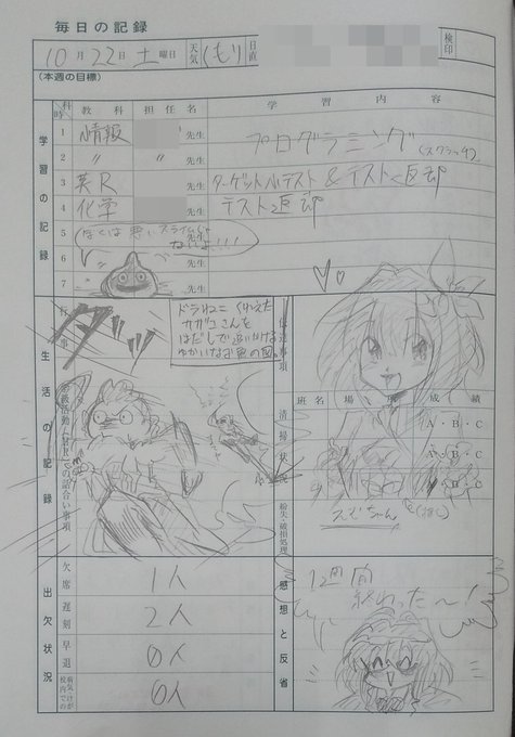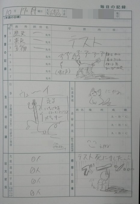 本日のカオス週番日誌 ※保存使用禁止 #もげろんいらすと #らくがき #イラスト #絵描きさんと繫がりたい #絵柄が好みって人にフォローされたい twitter.com/mogeron_03/s…