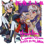 みてほしい👀✨ akipon様(@ vakiponv/#vakiponv)に僕と雷禅を描いていただいたよ🐺🦇🐹 雷禅も僕もとても…とても可愛い…🐺💞🐹 ふんわりと可愛い雰囲気がたまらなく良き…可愛い可愛いがとまらなかったよ…! 雷禅が女の子って感じなのがたまらなく良き…🐹❤ #もこらいアート