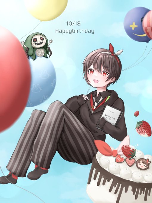 #もしうさ誕生日2022 #もしうさぁーと 依頼でおたおめサムネ描いたー!ᙏ̤̫͚🎂🍰🍴わーーーい㊗️🎂( '-' 🧁)ケーキチャン! twitter.com/mosi_usa_/stat…