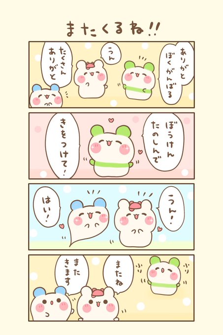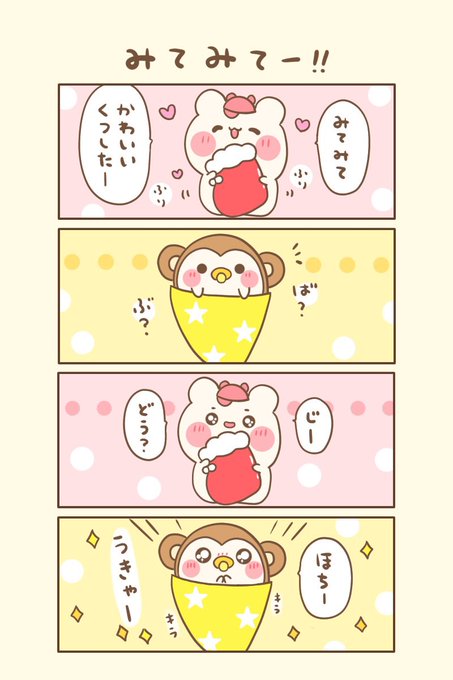 もちくまと7つの不思議な帽子🌈 🌟19の4『こうかんしてみよー』 おはよぉございます(●ˊ˘ˋ●)❤️ 今日もゆるるんよろしくま🐻❄️💖 #もちくまんが #漫画 #漫画が読めるハッシュタグ